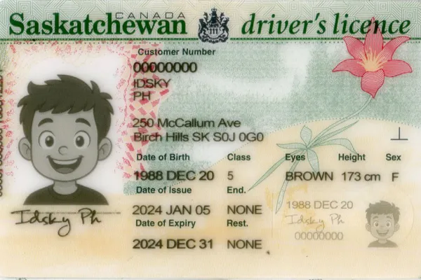 Our Saskatchewan-SK Driver Licenses ID is crafted with meticulous attention to detail, ensuring a premium quality product that looks and feels authentic. Each ID is manufactured using the same materials and techniques as genuine government-issued identification, making it virtually indistinguishable from the real thing.